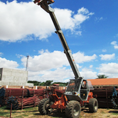 Monta cargas telescópico; Modelo sambron; De fabricación francesa; Motor perkin a diesel; Extecion máxima de brazo 15 m.; Capacidad máxima de carga 3.5 tonelada; Accesorios: pala, pinza y falcón